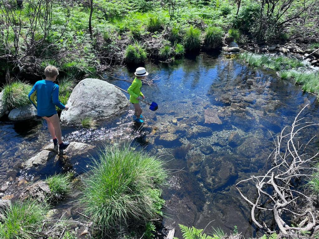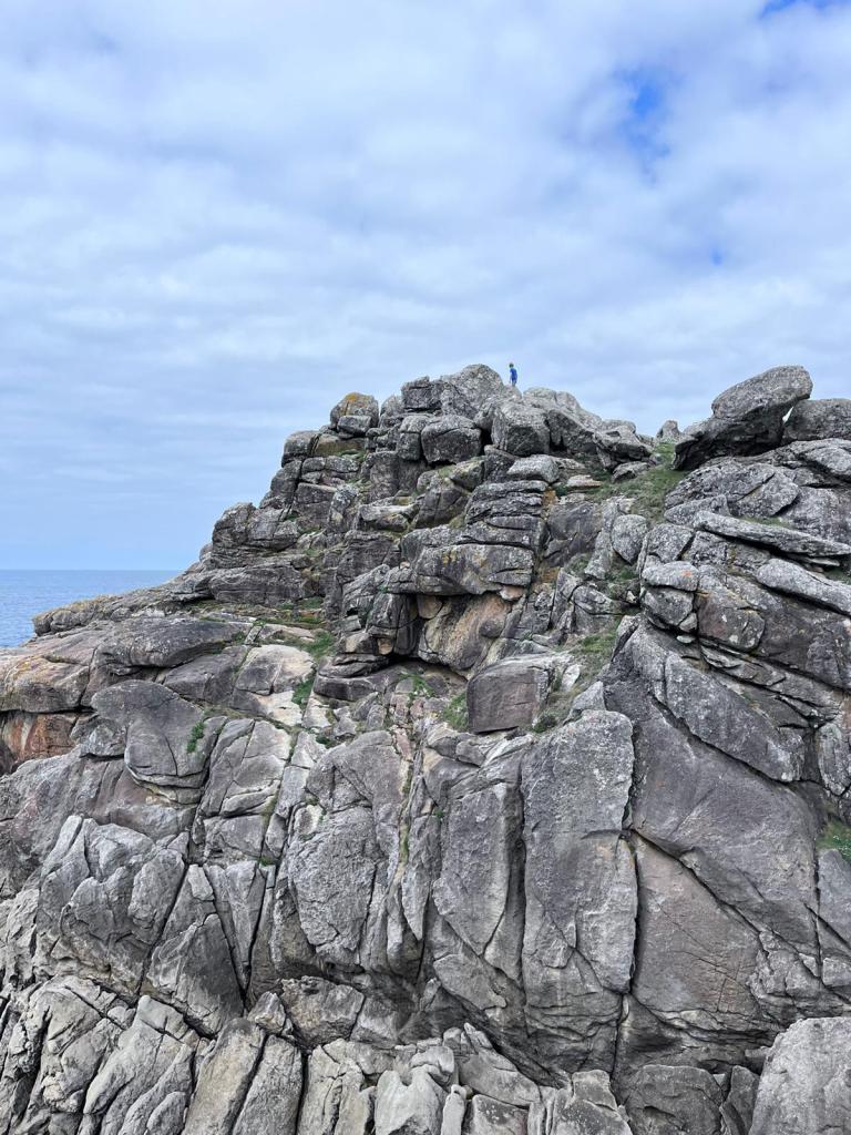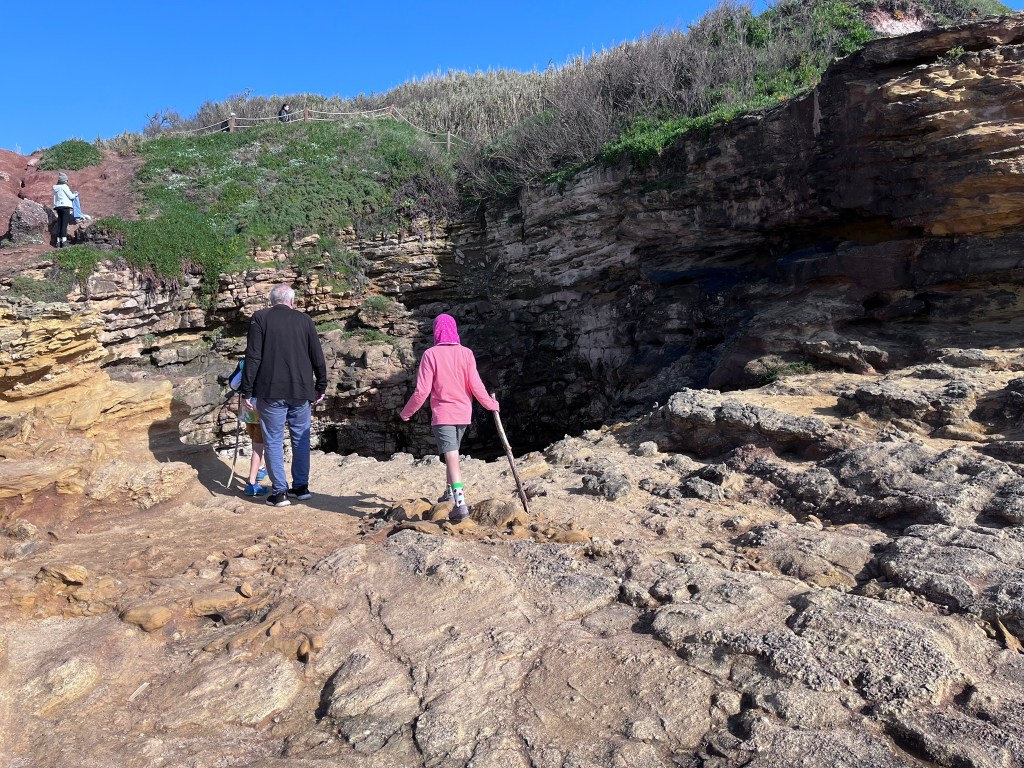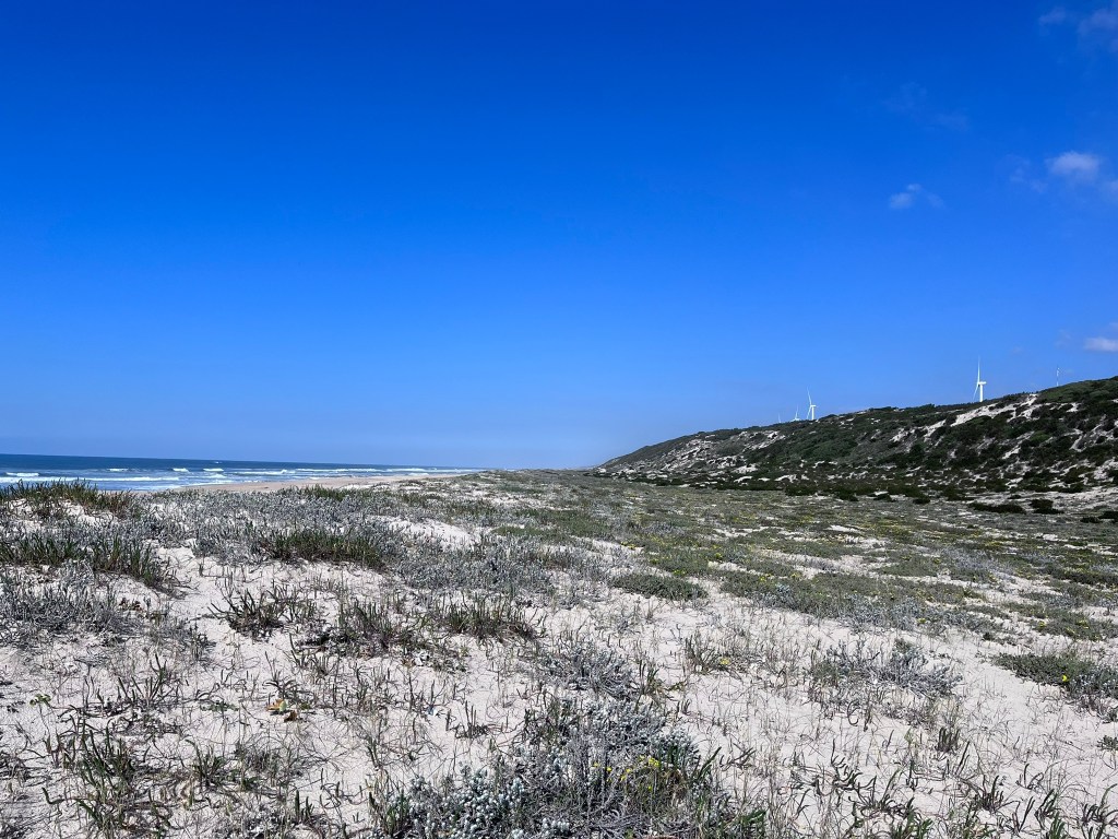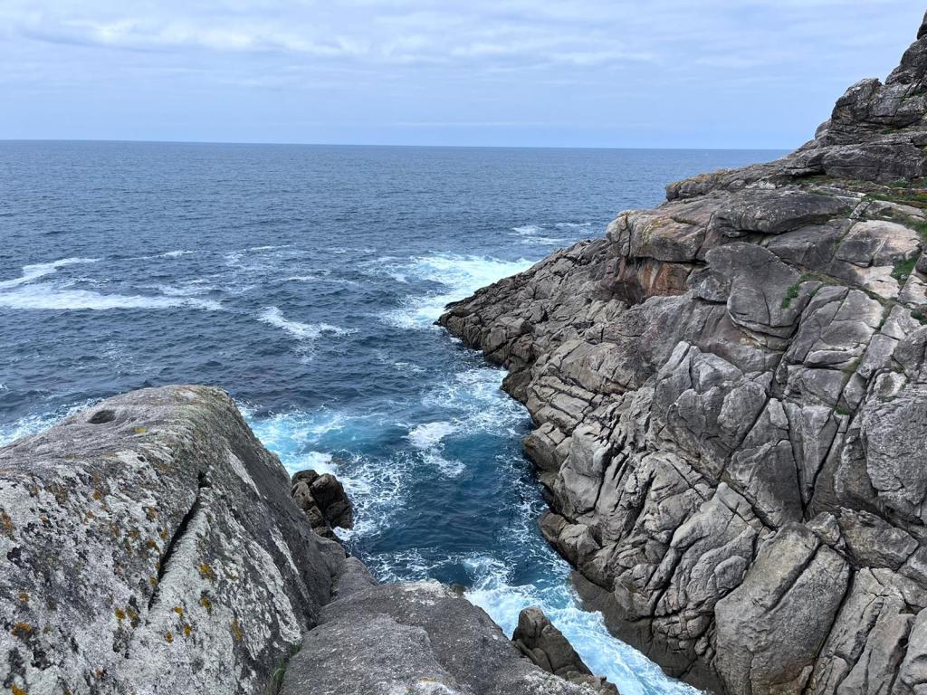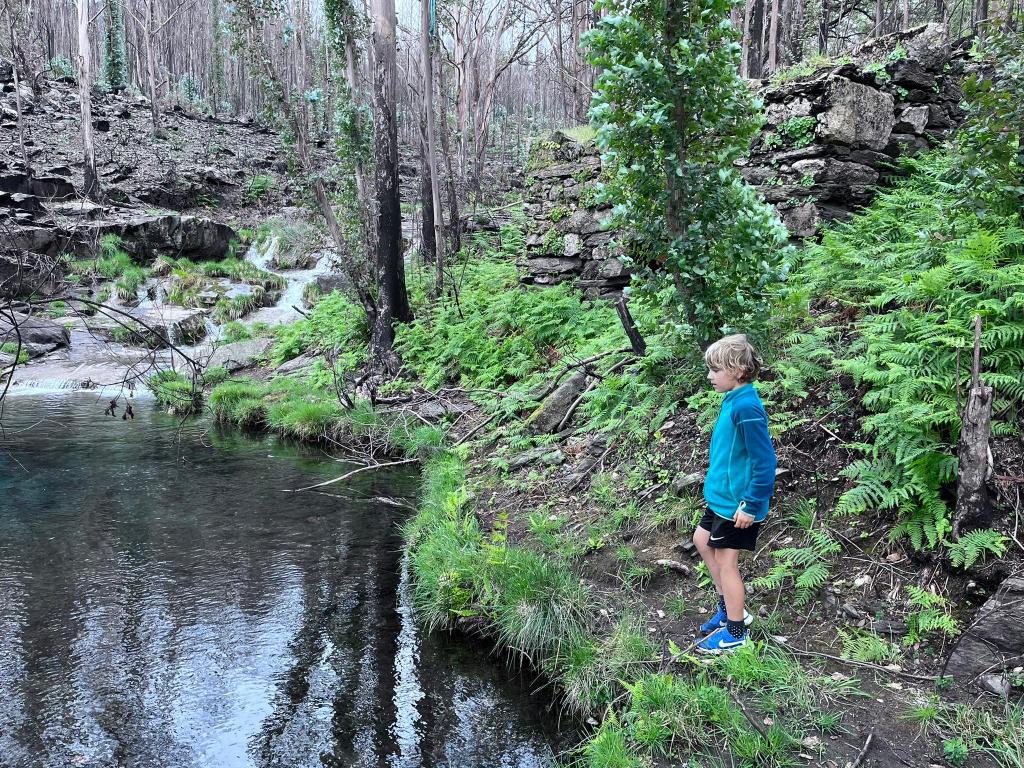 Eine erste Wanderung führt uns hinter den Platz. Hier brannte 2022 der Wald komplett nieder. Der Platz konnte gehalten werden. Die blauen Eukalyptusbäume schlagen alle wieder aus.Es geht ziemlich weglos obsi. Der Wasserfall im Hintergrund weist uns auf unser Ziel.Ein kleiner Fischteich befindet sich oberhalb. Sehr idyllisch.Die Jungs sind sofort begeistert.Zwei Tage danach besuchen wir den Leuchtturm von Corrubedo.Sicher war so manches Schiff froh um das rettende Leuchtfeuer.Und inmitten rauer Wildnis blüht ein Sandkrokus.Und sonst ist es sehr karg.Ein weiterer Ausflug führt uns zum Castro de Barona. Hinter diesen Felsen, landeinwärts haben sich vor 2200 Jahren Kelten niedergelassenVon den einstigen Rundhäusern sind noch die Grundmauern zu sehen.In den Gassen des Dorfes kann man gut spielen und klettern.Jari zieht es einmal mehr hoch hinaus.Beeindruckt verlassen wir die Siedlung.Auf unserem Platz geniessen wir immer wieder das Bad im 30 Meter langen Pool. Er steht uns meist exklusiv zur Verfügung.Einfach schön und erfrischend.Auch am Strand sind wir noch hin und wieder anzutreffen. Hier in A Pobra do Caraminal.Eine weitere Wanderung führt uns dem Rio Artes entlang. Ein richtig schöner zweistündiger Spaziergang.Direkt neben dem Camping bauen sich die Kinder und Ursina ihren eigenen Badeteich.Man beachte das kristallklare Wasser.Eine Spezialität der Gegend sind die Kornspeicher.Ganz in unserer Nähe erhebt sich der Mirador de Curota 500 Meter steil aus dem Meer. Die Aussicht ist überwältigend, doch möchte ich mich zum Schluss des Berichtes auf einige Spezialitäten des Berges konzentrieren.So leben hier Wildpferde.Überall blüht der Kaiseraffodill.Etwas seltener gedeiht die Engelstränen-Narzisse.Die Wassermelone allerdings findet man auf dem Markt von Noia.Ein idyllisches Städtchen, das wir bereits zweimal besucht haben. Ach ja, uns gefällt es in Galizien so gut, dass wir wohl noch ein paar Tage länger dableiben.