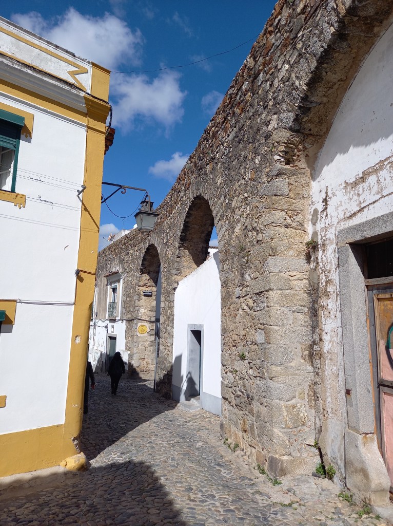 Wir sind in Evora gelandet und sind sofort fasziniert von diesem Städtchen, das noch komplett von einer geschlossenen Stadtmauer umgeben ist. Die engen Gassen tun ein Übriges, damit man sich sofort wohl fühlt.Die Kathedrale in der Oberstadt. Wie gewohnt neben alten, römischen Heiligtümern errichtet.In Evora ist es ein römischer Tempel. Leider nicht zu betreten, was einen dicken Touristen ein wenig ärgerte.Ein Aquaedukt aus dem 16. Jahrhundert zieht sich quer durch die Stadt.Natürlich sind die Türme der Stadtmauer bewohnt.Immer wieder geben Hinterhöfe preis, wie liebevoll man sie pflegt.Parkplätze sind rar!Blick auf die Kathedrale. Wir sind auf dem Weg in morbidere Gefilde.Wir besuchen das Ossarium. Tausende von Knochen sind gelagert. Ein wenig grauslich ist es schon.Mit dem Blick auf ein gefliestes Haus verlassen wir die Stadt und ziehen weiter nach Nazaré an der Atlantikküste. Davon mehr im nächsten Blog.