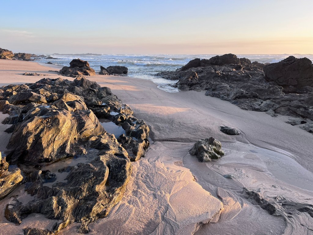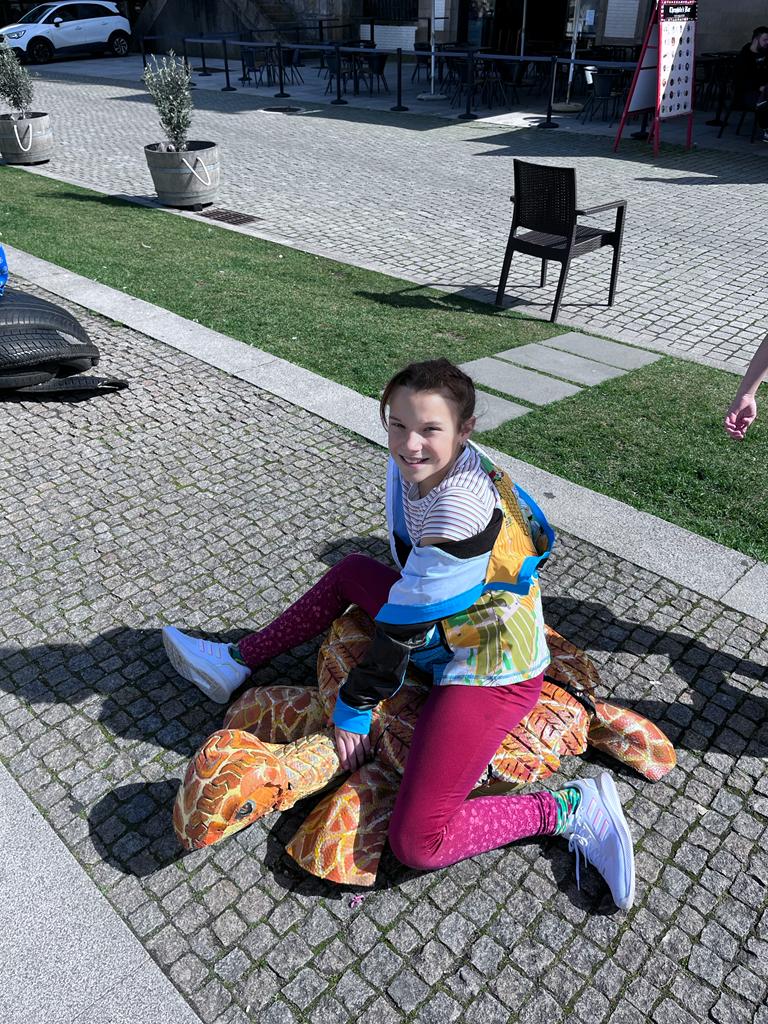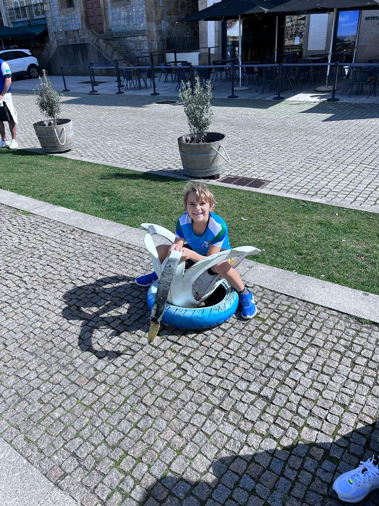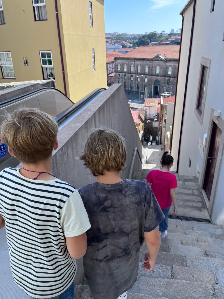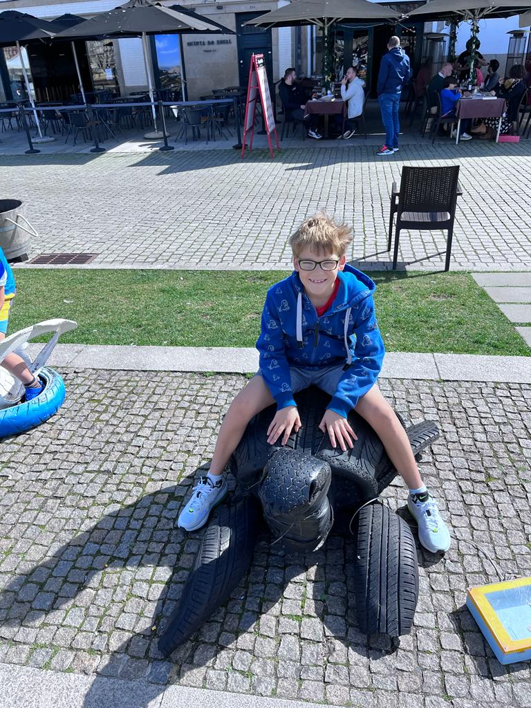 Wir haben Nazare verlassen und sind nach Vila Cha oberhalb von Porto gereist. Der ruhige Platz liegt 200 Meter vom Atlantik entfernt. Hier zeigt sich die Küste von ihrer wilderen Seite.Wie immer treffen wir die gleichen Touristen.Aber sonst gehört der Strand uns und lädt zum Bodyboarden ein. Matti lässt sich hier durch nichts abhalten.Zum Glück entspricht die Wassertemperatur nicht dem Bildeindruck. Es ist noch über 15 Grad warm.Minna feiert ihren 11. Geburtstag. Die Torte haben wir beim Bäcker bestellt, ohne gross etwas zu verstehen. Aber sie war toll, mit Liebe gemacht und im Hui gegessen. Happy Birthday, Minna!Unser erster Besuch in Porto! Hier spürt man den Frühling, genau wie diese Magnolie.Wer es gerne auf und ab hat, ist in Porto genau richtig.Diese Brücke ist eine von vielen, die den Douro überqueren. Die ganze Uferpromenade ist völlig ungesichert. So passt man automatisch auf.Der Blick weg vom Fluss zeigt etwas, das uns in ganz Portugal immer wieder auffällt. Neu und zerfallen liegen nahe beieinander. Zwar wird Vieles renoviert, aber zerfallene und unbewohnte Häuser gehören zum Stadtbild.Malerische Ecken findet man im Überfluss.Bevor es über den Fluss geht, bestaunen wir die Handorgel-Standseilbahn. Eine weitere Möglichkeit, in die Oberstadt zu gelangen.Wir nehmen den Fussgängersteg.So gelangen wir zu den Portoweinhändlern. Die alten Schiffe dienen halt nur noch Werbezwecken.Alles sehr touristisch und so haben auch die Kinder etwas zu bestaunen.Jari findet eine Schildkröte.Genauso wie Minna. Diese ist nur etwas liebevoller gemacht.Der Blick über den Fluss offenbart die Menge an Touristen, die in der Stadt sind.Wir fahren mit der Gondelbahn auf die obere Fahrspur der Brücke,Die Aussicht ist atemberaubend. Vor allem wenn man Höhenangst hat.Brückenblick mit jungen Touristen.Ein Selfie gehört heute auch dazu.Natas gehören zum kulinarischen Schatz der Stadt. Unbedingt probieren. Leider konnten wir nur noch die Verpackung fotografieren, Der Inhalt war im Nu verschwunden.Zurück in Vila Cha spielen die Kinder noch eine Weile am Strand, danach geht es heimwärts und direkt ins……..Sonnenstudio! Bis bald!