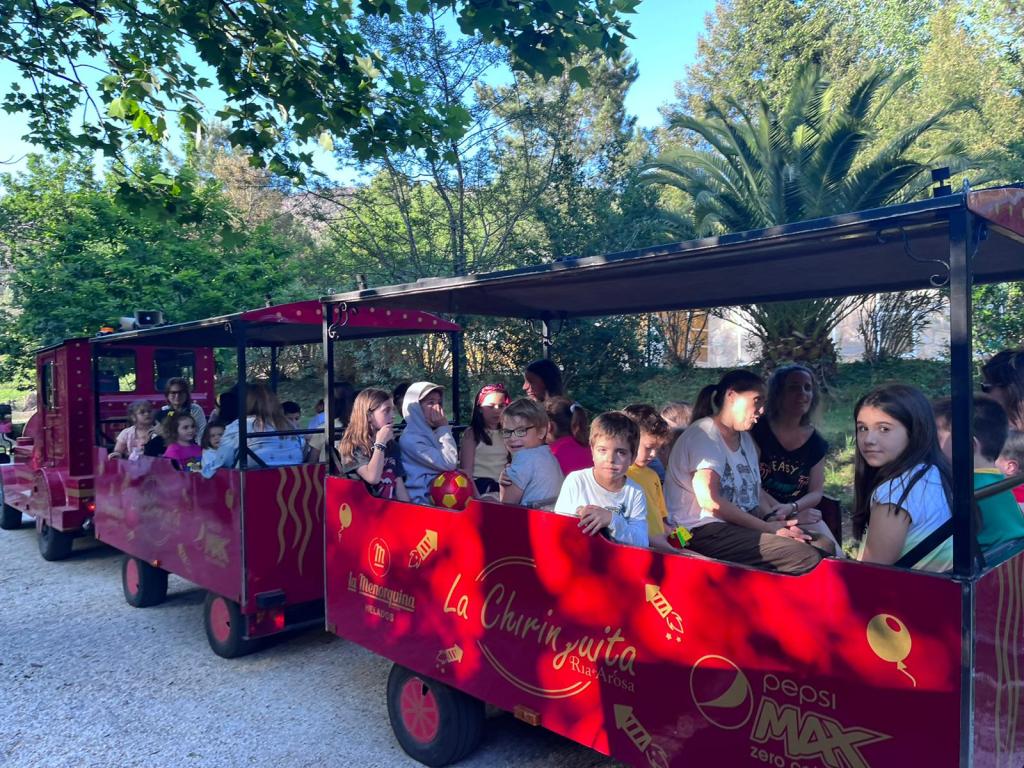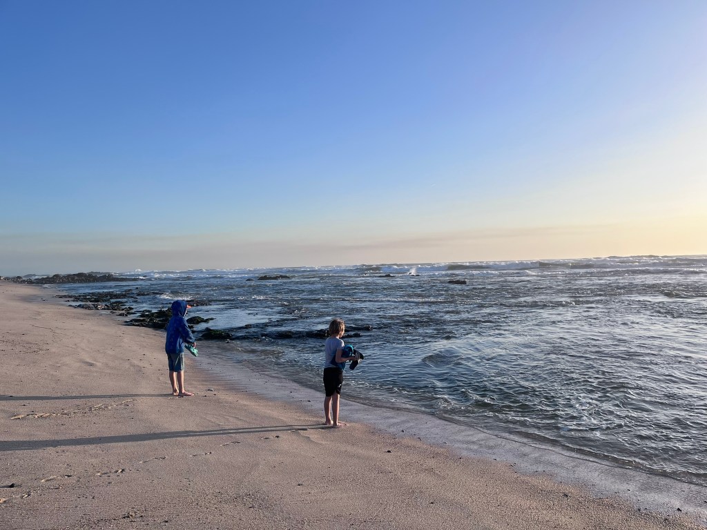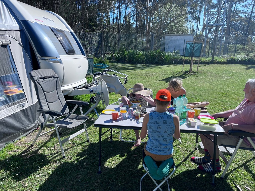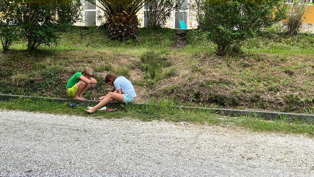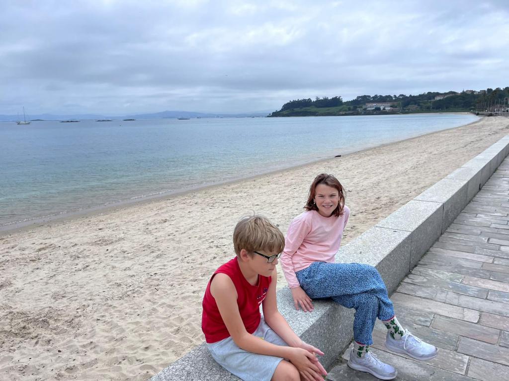 Die Zeit rennt! Noch seht ihr Bilder aus Ribeira, doch schon bald werden wir Galizien verlassen. Am Wochenende fährt der Platzbesitzer immer mit seinem Bähnli durch den Platz. Für alle Kinder ein Muss!Also auch für unsere Drei. Wir Eltern sitzen vor dem Wohnwagen und fotografieren. Ein paar Minuten Ruhe!So sieht unsere Wohnung in Ria de Arosa 2 aus. Ohne Wände, da wir völlig windgeschützt wohnen und die Temperaturen meistens angenehm sind.Ein letzter Besuch in Noja. Nach einem lokalen Festtag sind die Strassen immer noch mit Bändern geschmückt.Ein letztes Spielen vor dem Wohnwagen. Oder betrachten sie ganz konzentriert ein Tierchen? Und schon sind wir in Noja, in Kantabrien. Nach einer Nacht in Cudillero bleiben wir hier wieder länger. Hier sieht man den Weg zum Strand, der in einem Naturschutzgebiet liegt.Playa Joyel. Der Strand ist wirklich ein Juwel. Feinster Sand, schön flach mit wenig Wellen. Kein Plastik und keine Abfälle. Lediglich ein paar angeschwemmte Blätter. Wunderschön!Ein Genuss!Am Ufer der Lagune entdecken wir Krebse. Sie graben sich schnell in den Sand, wenn sie unsere Bewegungen spüren.Trotzdem erwischt Matti so ein Tierchen.Das Wetter ist sehr durchzogen. Es weht manchmal ein starker Wind und so können die Kinder zum ersten Mal seit dem Besuch am Wattenmeer ihre Drachen steigen lassen.Die beiden Lenkdrachen sind in ihrem Element.Minnas Hazel Heuler steigt sehr hoch und bleibt danach ohne weitere Hilfe am Himmel stehen.Entdeckt ihr den Delphin auch? Der Stamm hat sich in den Felsen verkeilt.Noch ein letzter Blick auf den Strand. Schon bald geht es weiter nach Frankreich.