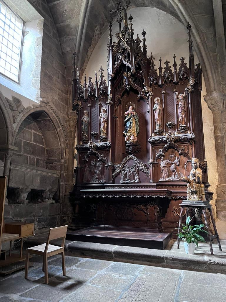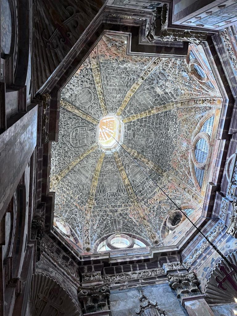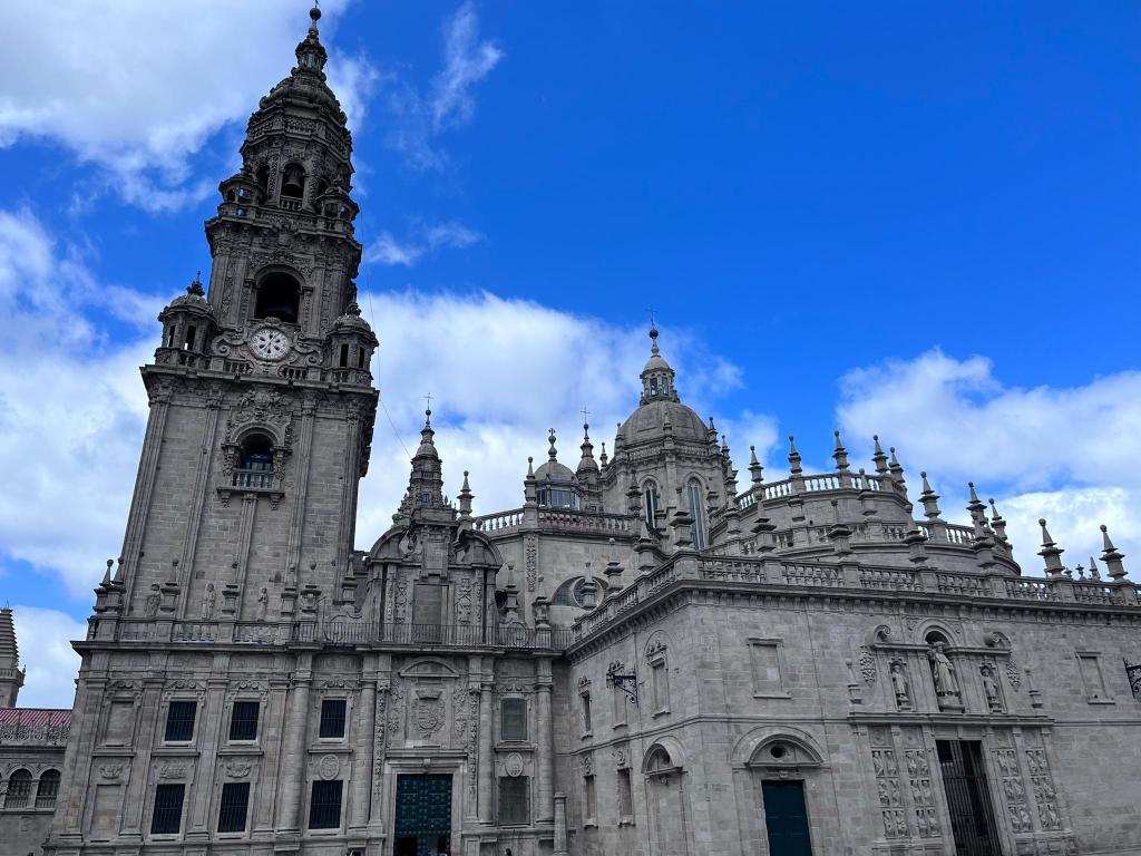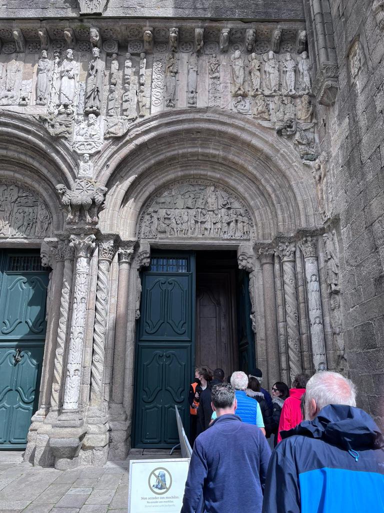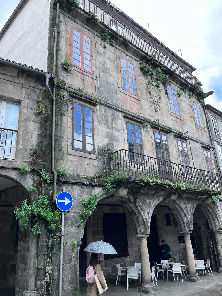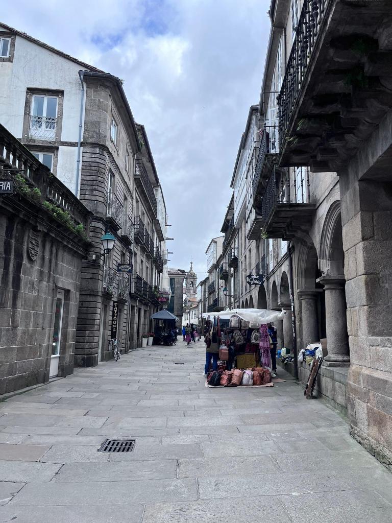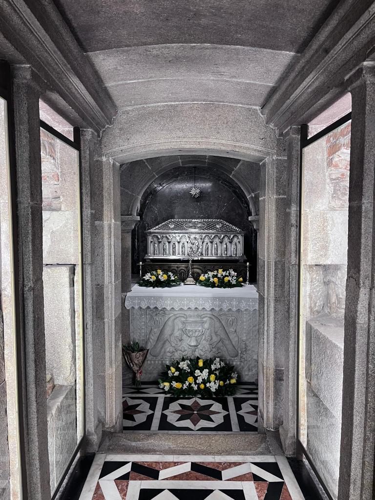 Ohne zu pilgern haben wir Santiago de Compostela gefunden. Parkplatz am Bahnhof, weshalb wir hier mit unserer Tour starten. So gibt es heute also nur die Eindrücke eines einzigen Tages.Zuerst sind die Strassen noch breit und arg befahren.Aber schon bald sind wir in der Altstadt. Enge Gassen_ ein Déjà vue.Uuups, wo geht es weiter?Natürlich finden wir den Weg und auch die üblichen Ramschverkäufer fehlen nicht.Wir kommen unserem Tagesziel immer näher, doch auch die Regenwolken haben uns entdeckt.Doch sobald wir die Kathedrale erreicht haben, bessert auch das WetterZuerst geht’s aussen rum.Klostermauern, die die Welt draussen hielten.Grosse Plätze, zu dieser Jahreszeit noch recht leer.Und endlich betreten wir die heiligen Hallen. Was vom Eingang her noch recht schlicht wirkt, ändert sich bald.Der Prunk des Hauptaltars ist überwältigend.Die Orgel, das heisst eigentlich nur eine Hälfte. Der Rest ist gleich gross vis à vis.Altar, seitlich.Etwas schlichter die Seitenaltäre.Schlicht und doch eindrücklich, was nicht zuletzt dem Boden zu verdanken ist.Super, gell!Ein Blick in die Gruft des heiligen Jakobus des Älteren.Bevor wir die Kirche verlassen zieht uns dieses Fenster in Bann.Und auch dieses Deckenteil hat uns fasziniert.Am Anfang wieder am Ende, beim Eingang.Den Weg zurück säumten unzählige Kamelien. Deshalb schliesse ich heute mit diesen blühenden Bäumen. Zuerst in hellroisa.Eine dunklere Variante.Unschuldig rein die Weissen.Den Schlusspunkt setzen heute aber diese Rosen und Glyzinien. Für uns geht es zurück nach Oleiros. Gas müssen wir eben auch noch besorgen. Es ist Frühling, geniessen wir ihn.
